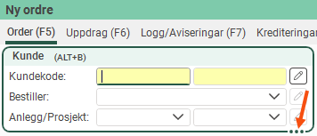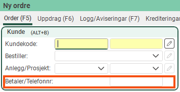 Bildet ovenfor viser gruppen Kunde, som i dette eksemplet vises på fanen Ordre i ordremottaket.