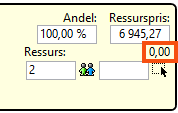 Velg ressursprising. Du kan også legge til nye eller endre eksisterende ressurspriser ved å klikke på [Ingen] betyr at det ikke genereres noen kostnad, selv om manuell kostnad er lagt inn.
