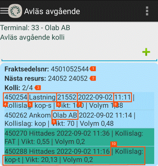 Om det finns något fraktsedelnnummer så visas det vid skanning av kollin och fraktsedlar.