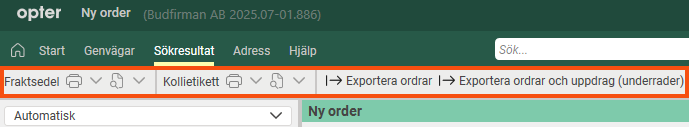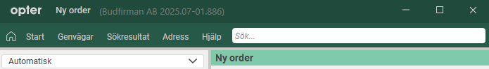 Flyttar markören till sökfältet längst till vänster i ordermottagningen. Ctrl + F fungerar i Opter från och med version 2025.12.00 i nya designen. |