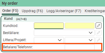 Bilden ovan visar gruppen Kund som i det här exemplet visas på fliken Order i ordermottagningen.