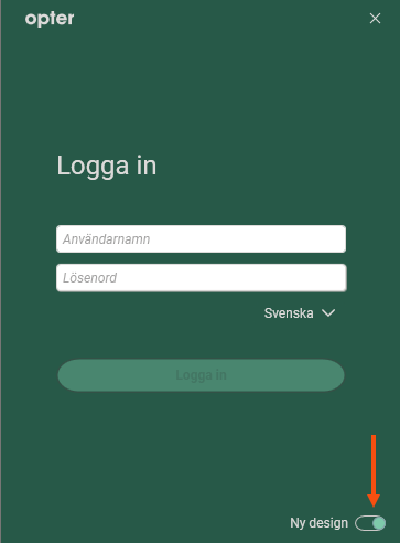 När du loggar in kan du välja ny eller klassisk design genom att klicka på reglaget längst ner till höger. Opter sparar ditt senaste val.