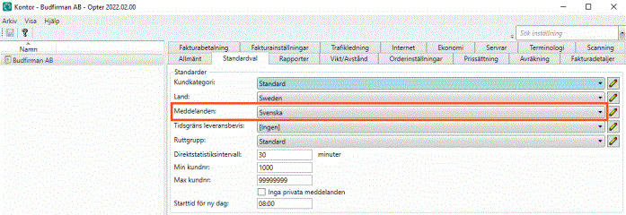 Valet i fältet Meddelanden på fliken Detaljer i kundregistret för den kund som står på ordern.
